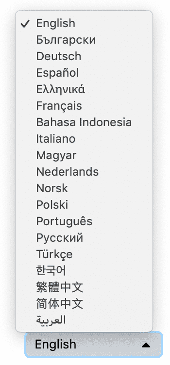 The first cool feature enabled by Crowdin is a language completion illustration. It lets you see at a quick glance what’s the current translation status for all the strings. This is also a great motivator for people to translate the languages they speak!
